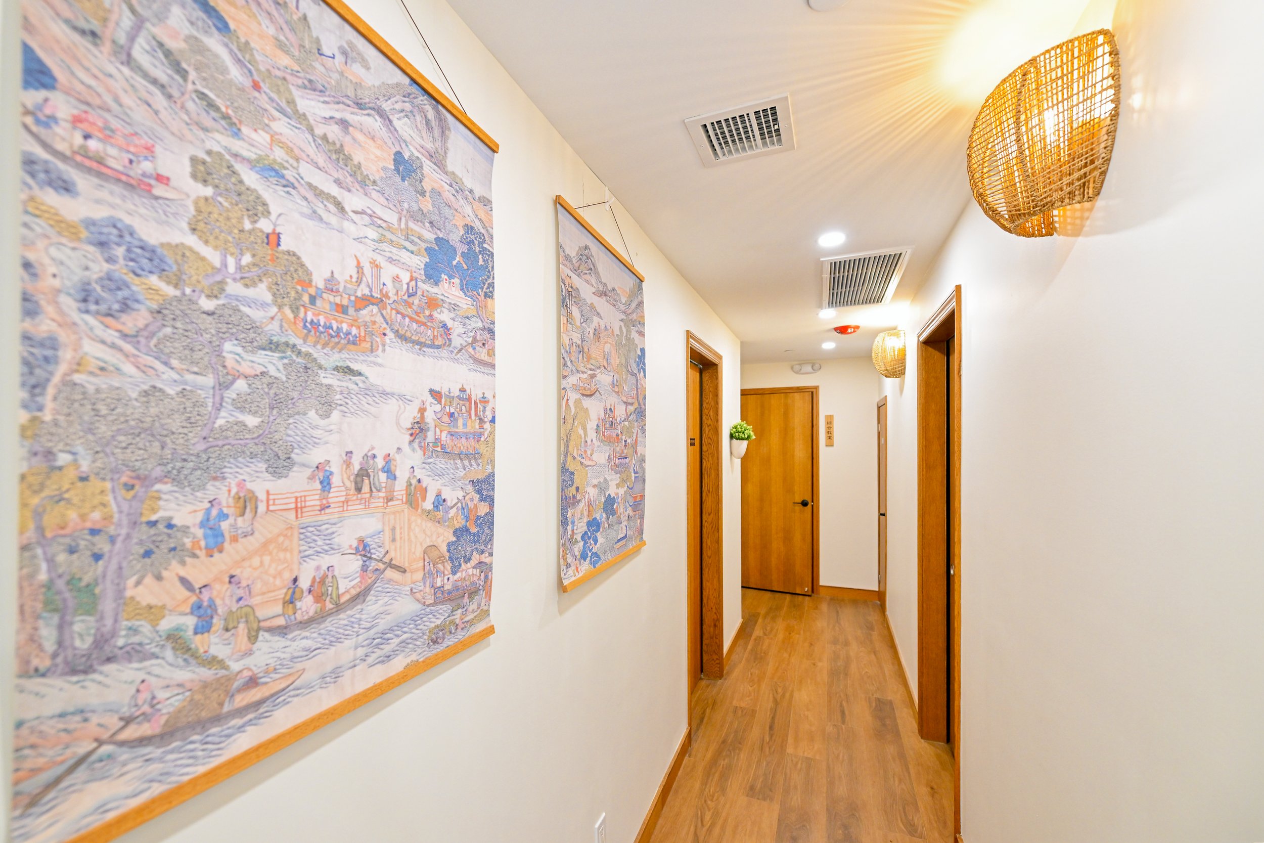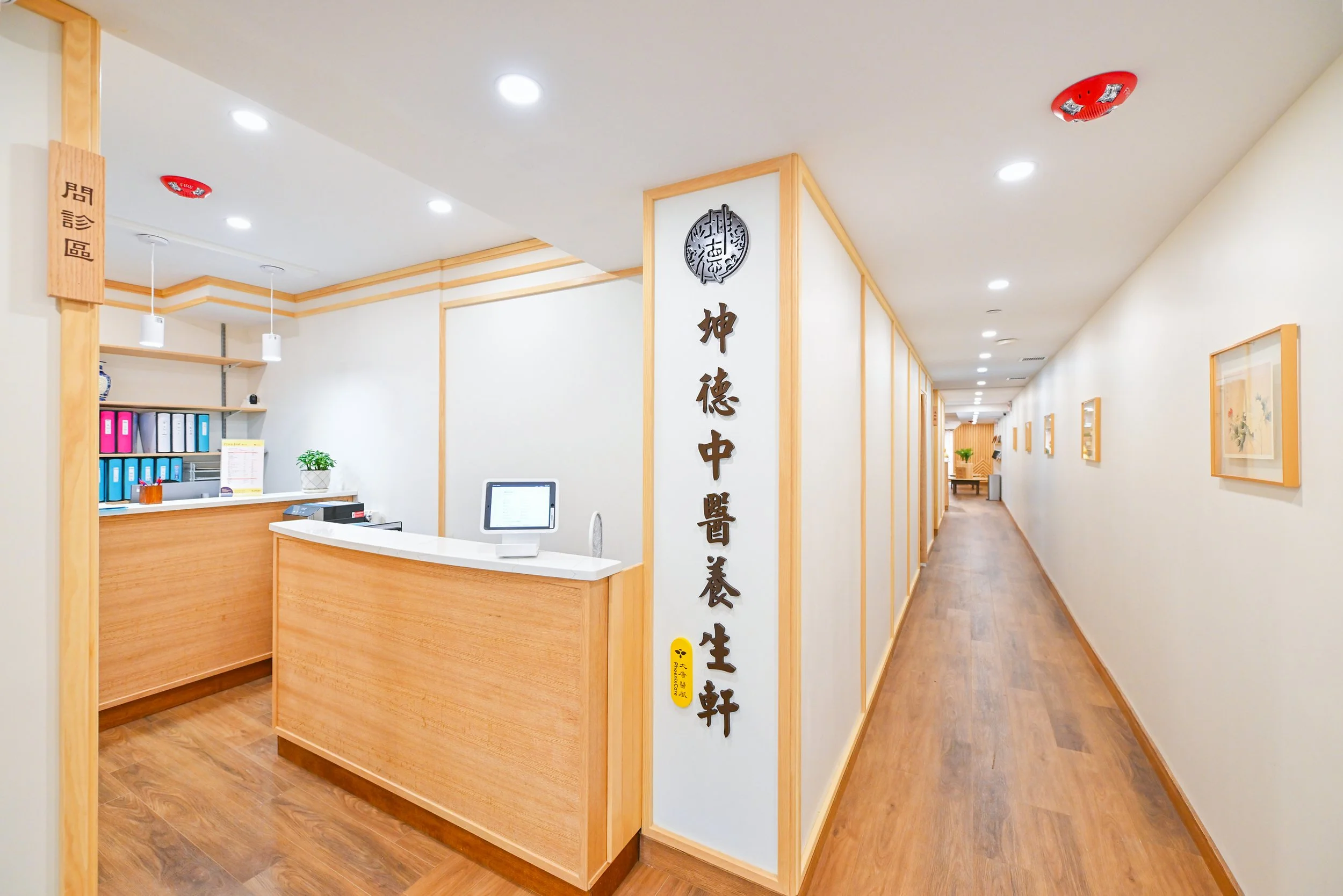 An old, dark massage place was transformed into a warm, airy environment for the Chinese medicine business. The carefully chosen materials and colors echo with the Traditional Chinese Medicine root.